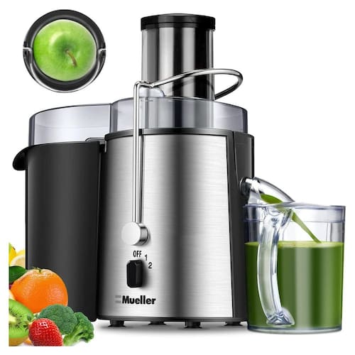 simMueller Juicer Ultra Power, extrator fácil de limpar, máquina centrífuga de suco, calha de alimentação larga de 7,6 cm para frutas e vegetais inteiros, antigotejamento, grande, prata