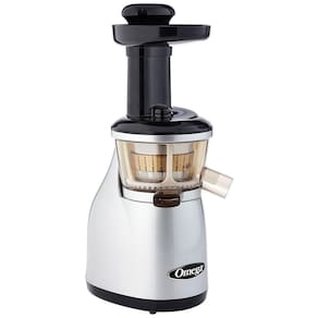 Baixa velocidade, sistema de sumo mastigador de 80 RPM. O espremedor processa a 80 rpm, espremendo em vez de triturar. Isso permite que o suco mantenha sua cor pura, sabor natural, vitaminas e nutrientes. Espremedor de duplo estágio. Primeiro, o suco é extraído esmagando se a fruta ou o vegetal. Então, antes de a polpa ser ejetada, a polpa é comprimida durante a segunda etapa de prensagem. Isso resulta em um maior rendimento de suco e uma polpa muito seca. Econômico, pois o espremedor de sumos é tão eficiente e produtivo, você obterá a maior quantidade de suco rico em nutrientes com a menor quantidade de frutas, vegetais, verduras. O sistema de baixa velocidade limita a espuma, evitando a oxidação. O suco pode ser zenado por até 72 horas sem degradação ou separação do suco. Três configurações On, Off e Reverse. Reverter é uma opção a ser usada quando algo está travado ou você precisa desobstruir. Cor Prata Material aço inoxidável Marca Omega Peso do item 8kg Material da lâmina em aço inoxidável Potência 150 Watts