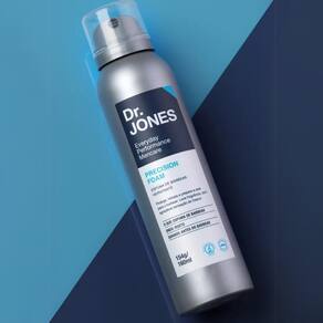 A espuma de barbear Precision Foam, da Dr. JONES, reúne o melhor da mousse e do creme de barbear das barbearias tradicionais em um produto prático, com embalagem moderna que dispensa o pincel.