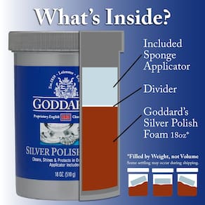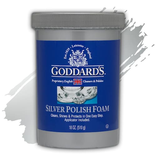 - Goddard's A espuma prateada dissolve facilmente manchas de suas antiguidades, joias e itens decorativos. A ação de espuma limpa até mesmo a filigrana mais complexa onde outros polidores de metal não conseguem alcançar.