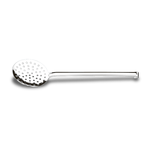 escoar alimentos preparados em água ou óleo. Seu bojo possui múltiplos orifícios e bordas levemente elevadas que fazem com que o alimento fique sequinho muito mais rápido. A peça é inteiramente produzida em aço inoxidável, um material que reúne funcionalidade e elegância: resistente e fácil de limpar, possui um sofisticado acabamento em alto brilho e pode ir à lava-louças. A espumadeira da linha Arienzo tem 34,5cm de comprimento total e cabo longo para garantir a sua segurança.