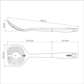 Descrição técnica: Utensílio de nylon, que resiste até uma temperatura de 180 °C. Cabo com furo passante possibilitando que seja pendurado na sua cozinha. Utensílio ideal para uso em panelas com revestimentos antiaderentes e cerâmicos, pois não danifica o produto. Pode ir à máquina de lavar louças facilitando seu dia a dia.