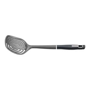 Utensílio de nylon, que resiste até uma temperatura de 180 C. Cabo com furo passante possibilitando que seja pendurado na sua cozinha. Utensílio ideal para uso em panelas com revestimentos antiaderentes e cerâmicos, pois não danifica o produto. Pode ir à máquina de lavar louças facilitando seu dia a dia.