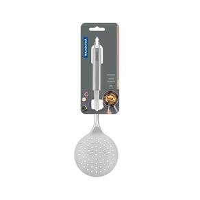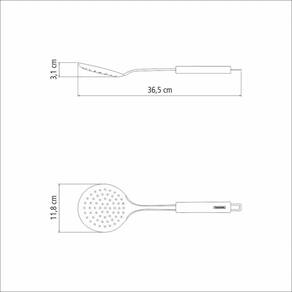 Espumadeira Tramontina Marffim Em Aço Inox Tramontina Espumadeira Tramontina Marffim em Aço Inox Tramontina - Frite quitutes deliciosos com mais praticidade e eficiência. Para isso, utilize a Espumadeira Tramontina Marffim em Aço Inox e obtenha muita facilidade na cozinha! A peça é fabricada totalmente em aço inox e apresenta alta resistência e durabilidade. A peça que vai completar os seus afazeres e trazer muita facilidade ao seu dia a dia!OrientaçõesTotalmente feita de aço inox, por isso não solta nenhum resíduo nos alimentos, mantendo-os saudáveis. Altamente durável, mantém suas características , preservando a beleza, a higiene e a durabilidade do material. Pode ser lavada diariamente na máquina de lavar louças.ObservaçõesUse apenas sabão ou detergente e uma esponja macia. Outros tipos de produto como palha de aço, poderão riscar ou prejudicar o brilho da peça. Enxágue cada item a fim de remover totalmente os resíduos dos produtos de limpeza, que, por serem abrasivos, podem danificar o inox. Sempre que possível, use água quente, pois renova o brilho da peça. Após a lavagem, enxugue imediatamente a peça, caso contrário, as substâncias químicas da água (cloro) poderão causar manchas. Evite atrito entre as peças durante o processo de lavagem e no armazenamento, para mantê-la sem riscos. Evite o contato do produto com superfícies quentes, pois elas provocam a descoloração do material. Não guarde a peça em locais úmidos. A umidade também provoca manchas.Características GeraisEAN137891116157992DUN1417891116157999NCM8215.99.10Peso Líquido0,1570 kg.Peso Bruto0,1680 kg.Metragem0,001742 m.Dimensões Embalagem (Compr. X Larg. X Alt.)410x 118x 36 mm.Dimensões Produto (Compr. X Larg. X Alt.)365x 118x 31 mm. Características Gerais do Produto: Garantia: - 1 Ano