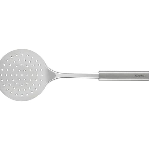 Espumadeira Tramontina Marffim em Aço Inox Frite quitutes deliciosos com mais praticidade e eficiência. Para isso, utilize a Espumadeira Tramontina Marffim em Aço Inox e obtenha muita facilidade na cozinha A peça é fabricada totalmente em aço inox e apresenta alta resistência e durabilidade. A peça que vai completar os seus afazeres e trazer muita facilidade ao seu dia a dia Como usar o produto Use apenas sabão ou detergente e uma esponja macia. Outros tipos de produto como palha de aço, poderão riscar ou prejudicar o brilho da peça. Enxágue cada item a fim de remover totalmente os resíduos dos produtos de limpeza, que, por serem abrasivos, podem danificar o inox. Sempre que possível, use água quente, pois renova o brilho da peça. Após a lavagem, enxugue imediatamente a peça, caso contrário, as substâncias químicas da água (cloro) poderão causar manchas. Evite atrito entre as peças durante o processo de lavagem e no armazenamento, para mantê-la sem riscos. Evite o contato do produto com superfícies quentes, pois elas provocam a descoloração do material. Não guarde a peça em locais úmidos. A umidade também provoca manchas. Descrição técnica: Totalmente feita de aço inox, por isso não solta nenhum resíduo nos alimentos, mantendo-os saudáveis. Altamente durável, mantém suas características originais, preservando a beleza, a higiene e a durabilidade do material. Pode ser lavada diariamente na máquina de lavar louças. Especificação técnica: EAN13: 7891116157992 DUN14: 17891116157999 NCM: 7323.93.00 Peso Líquido: 0,1600 kg. Peso Bruto: 0,1650 kg. Metragem: 0,001631 m³. Dimensões Produto (Compr. X Larg. X Alt.): 365x 118x 31 mm.