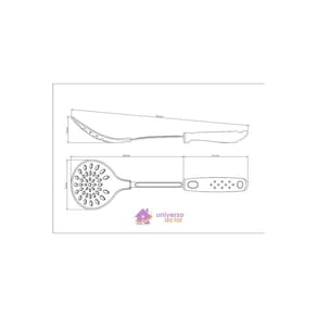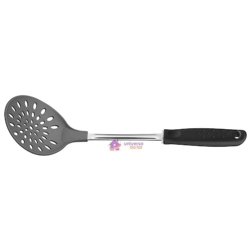 Espumadeira de Nylon que permite uso em temperaturas de até 200 C e haste de aço inox. O cabo de polipropileno possui furo passante possibilitando que seja pendurado na sua cozinha. Utensílio ideal para uso em panelas com revestimentos antiaderentes e cerâmicos, pois não danifica o produto. Pode ir à máquina de lavar louças facilitando seu dia a dia.