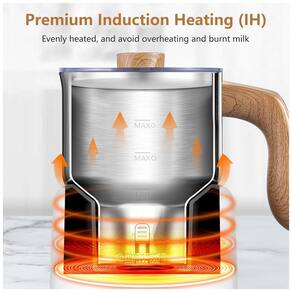 Desfrute de 8 funções em 1 com este sistema de vaporização de leite automático AMZCHEF! Transforme leite em espuma densa, leve, quente, chocolate quente, espuma de leite gelado, espuma de leite de castanha, espuma de leite de soja e comida para bebê à base de laticínios. Com aquecedor de leite automático, você pode preparar seu cappuccino, americano gelado, latte e cacau quente favoritos em casa a qualquer momento. O aquecedor de leite aplica aquecimento por indução seguro, aquecendo os ingredientes de forma envolvente e eficiente, evitando superaquecimento e queima. A tecnologia de acionamento magnético radial cria uma espuma de leite delicada rapidamente. Este sistema de vaporização de leite é fácil de operar com apenas um botão, display OLED moderno e de alta tecnologia, permitindo que você controle facilmente as funções. Fácil de limpar com copo dividido.