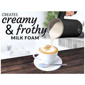Espuma e aquece leite de uma só vez bata o creme ou leite em uma mistura sedosa e aveludada no conforto da sua casa com o aquecedor e batedor de leite para cozinha Zulay construído com interior em aço inoxidável resistente à ferrugem sem BPA. O exterior oferece uma aparência estética elegante e moderna para o seu canto de cozinha. A tampa é feita de material Tritan inquebrável que é transparente permitindo que você veja sua maravilhosa criação de espuma. 4 Funções de Espuma Possui um controle de um botão com quatro configurações espuma de leite quente e espessa, espuma de leite morna e fina, leite quente com o mínimo de espuma e espuma fria. Perfeito para qualquer tipo de bebida à base de expresso, matcha latte, cacau quente, leite com chocolate e muito mais Possui capacidade de 150ml para espuma de leite e 300ml para aquecimento do leite. Espuma Rápida e Silenciosa Comece bem o dia fazendo um delicioso café com leite e cappuccinos com um espumante de leite que opera silenciosamente ao aquecer ou espumar o leite para você desfrutar em menos de dois minutos. Construído com um interior de revestimento em camadas antiaderente. Inclui um batedor de aço inoxidável que gira sem esforço, dando lhe sempre uma espuma rica e consistente. Fácil de limpar e manter para limpar, encha cuidadosamente o espumador de leite e o aquecedor sob a torneira e certifique se de que nenhuma água escorra pela lateral para chegar perto dos componentes elétricos por baixo. Se houver algum resíduo de leite restante, você pode limpá lo com uma toalha úmida e voila, está pronto para outra espuma Marca: Não Informado