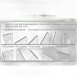 Características : Ângulos dos esquadros : 30/60/90º Tamanho : 42 cm Espessura : 2mm padrão desenho técnico Adicionas : sem chanfro e sem marcações Marca : fenix