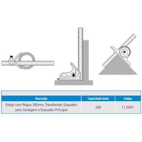 O Esquadro Combinado é um instrumento utilizado para traçagens e medições de diferentes ângulos, profundidades e alturas.