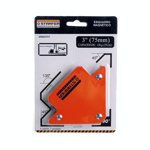 Esquadro magnético 3 com capacidade de 12KgEsquadro do tipo magnético possui lâmina em aço inox e base de alumínio, oferecendo resistência e durabilidade.Pode Ser Utilizado Na: soldagem montagem marcação de Peças instalação de Tubos e Como Guindaste Informações Técnicas: Marca: StarferRef:5043751Suporta até 12 kgPrecisão de ângulos: 45°/90°/135°