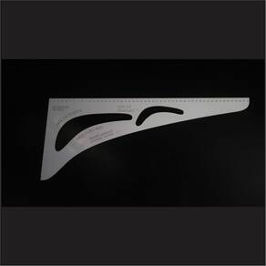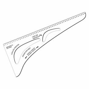 o esquadro curvo com cavas milimatrado é um instrumento de desenho utilizado para traçar linhas retas verticais com precisão e uma curva no lado que seria a hipotenusa. Os esquadros curvos tem o formato de um triângulo retângulo escaleno com um dos lados em curva. Como utilizar