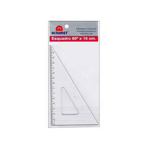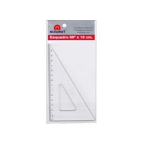 Esquadro em poliestireno, com escala gravada por transferência de imagem, garantindo alta precisão. Possui micro ressaltos na face que entra em contato com o papel para evitar o desgaste da escala. Cantos arredondados para maior segurança.