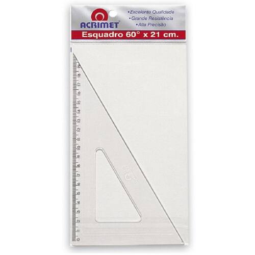 Esquadro em poliestireno, com escala gravada por transferência de imagem, garantindo alta precisão. Possui micro ressaltos na face que entra em contato com o papel para evitar o desgaste da escala.