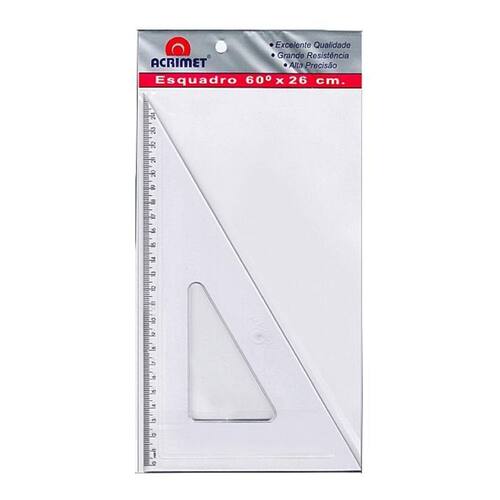 Esquadro em poliestireno, com escala gravada por transferência de imagem, garantindo alta precisão. Possui micro ressaltos na face que entra em contato com o papel para evitar o desgaste da escala.