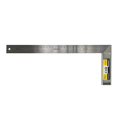 Esquadro Thompson Premium 14'' com cabo metálico, em inox e alumínio, ideal para pedreiros, marceneiros e carpinteiros que buscam precisão, durabilidade e alta performance em ângulos de 45° e 90°. Thompson