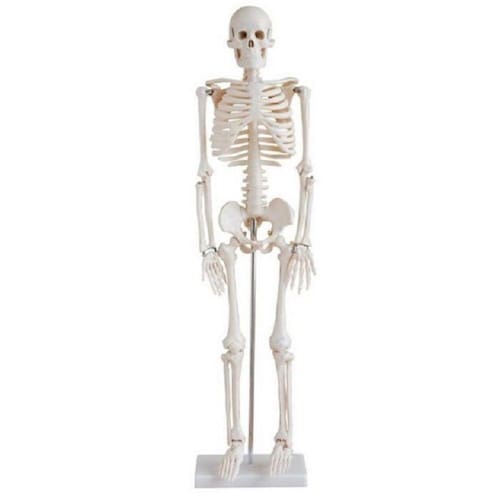Modelo de esqueleto padrão, articulado com aproximadamente 85cm de altura. Confeccionado em resina plástica rígida na cor natural.Composto por:Ossos do crânio (calota craniana, arcada dentária, cavidade nasal, condutos auditivo, cavidade orbitaria, osso frontal, temporal, vômer, nasal, palatino, etmoide, maxila, mandíbula, parietal, zigomático, lacrimal, esfenoide, occipital)Ossos da coluna vertebralOssos do tórax (Osso esterno, e costelas)Ossos do membro superior (clavícula, escápula, úmero, ulna, rádio, ossos do carpo, metacarpo e falanges)Ossos da pelve (sacro, ílio, ísquio, sínfise pública, cóccix e púbis e articulação sacroilíaca)Ossos do membro inferior (fêmur, patela, tíbia, fíbula, ossos do tarso, Calcâneo, Metatarso)O modelo TGD-0112 permite:Movimentação da mandíbulaPossibilita a remoção dos membros superiores, membros inferiores e a calota cranianaVisualização das suturas do crânioVisualização dos forames do crânioAcompanha:BaseSuporte -Manual do usuárioEmbalagem:Medida da Caixa de Isopor e caixa de papelãoComprimento x Largura x Altura:50 Cm x 25 cm x 17 cmPeso: 2,354 kg