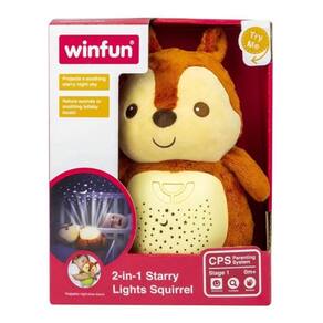 Projetor esquilo 2 em 1 e luz noturna Projeta um céu noturno estrelado relaxante Brilho suave em cores diferentes Transforma-se facilmente em um amigo noturno brilhante e abraçável Pressione o botão de música para sons da natureza ou música de ninar suave