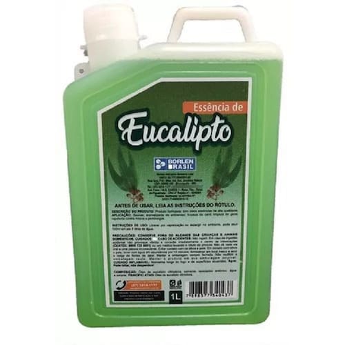 Essência de Eucalipto Para Sauna Galão 1,0 LitrosIndicações: Saunas, Aromatizante de ambientes, Limpeza de canil,Limpeza em geral, Preventivo contra moscas e pernilongos.Modo de Usar: Liberar por vaporização ou aspergir no ambiente.Pode-se Diluir 100ml em até 5,0 litros de água;ATENÇÃO: CONSERVE O PRODUTO FORA DO ALCANCE DAS CRIANÇAS E ANIMAISDOMÉSTICOS.Autorização funcionamento: MS 3.03.663-5Produto notificado na Anvisa/MSImagens meramente ilustrativas01 Galão de Essência De Eucalipto Para Sauna 1 LitrosPRECAUÇÕES: Manter a embalagem fechada, ao abrigo da luz e calor, emcontato com os olhos, lavar com água em abundância. Em caso deingestão procure o médico levando o rótulo ou embalagem do produto.CUIDADO: Produto inflamável não reutilizar a embalagem.COMPOSIÇÃO: Óleo de eucalipto citriodora renex, agua, álcooletílico e corante. Marca: Shopmy