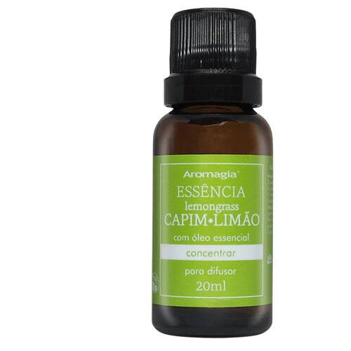 Essência Pura Capim Limão Com Óleo Essencial Aromagia 20mlUso externo - Não ingerir - Não usar na pele.Essência pura, naturidêntica e concentrada para difusor de aromas, com adição de óleo essencial Lemongrass, aroma capim limão.Contém óleos essenciais, não testado em animais, produto vegano, selo WNF de qualidade.-Anvisa: Nº 25351.409397/2013-75-Conteúdo: Frasco com 20mlModo de usar:Aplique gotas em um difusor de aromas. Para difusor à vela ou tomada, aplicar 5 gotas.Em difusor ultrassônico WNF, aplicar 10 gotas.