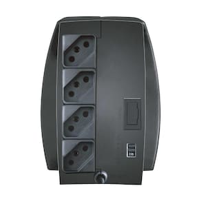 Especificações Técnicas: 4 Tomadas Elétricas tripolares de saída (Padrão N/T/F), atendendo novo padrão NBR 14136:2002; Tensão nominal de entrada 115Volts. Tensão nominal de saída mono 115Volts. Tensão de saída: 115 Volts Porta fusível externo Potência máxima 500VA Proteção: Fusível 5A - 250V Frequência 60HZ Chave ON / OFF embutida e com LED, para evitar desligamento acidental Cabo trifásico com 2P+T conforme norma ABNT LED sinalização de ligado Distorção Harmônica Total (THD) Carga Resistiva: Não introduz Gabinete em ABS Grau de Proteção IP 20 Rendimento: 70% Faixa de Temperatura: 0° C a 40° C