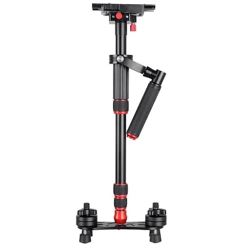 Estabilizador gimbal kingjoy vs1047b steadicam handheld profissional vídeo até 5kg o estabilizador gimbal kingjoy vs1047b steadicam handheld profissional vídeo feito de liga de alumínio de aviação de alta resistência suporta equipamento com peso até 5kg. Ele é utilizado para criar movimentos fluidos em sua câmera, mesmo ao caminhar ou correr, para acompanhar a ação, tornando a gravação de vídeo suave e sem tremer. Portátil e compacto seu comprimento estendido é de até 120cm e mínimo de 53cm, possui nivelador de bolha e pesa apenas 2. 2kg, tornam-no a escolha perfeita para longos períodos de filmagem. Esta gimbal handheld steadycam kingjoy vs1047b é um sistema de estabilização portátil de vídeo projetado para reduzir a vibração e estabilizar as imagens em câmera dslr, câmera mirrorless e filmadoras. Não é apenas um estabilizador de vídeo, mas também atua como um tripé ou monopé para atingir vários tipos de captações, dando aos fotógrafos ou videomakers a capacidade de criar imagens profissionais suaves enquanto a câmera está em movimento. O gimbal multi eixo utilizado pelo steadycam kingjoy vs1047b isola a câmera de oscilações e movimentos de torção incidentais. A placa de base vem com uma placa de liberação rápida quick release com plate longo de 14cm e parafusos de 1/4, para montagem e desmontagem rápida e fácil da câmera de vídeo, com botões de ajustes fino para ajudar a atingir o equilíbrio ideal, também apresenta o recurso de segurança de bloqueio duplo kingjoy que ajuda a garantir que a câmera não caia acidentalmente. O gimbal steadicam vs1047b possui corpo de alumínio e sua alça handle é revestida com borracha para torná-la mais confortável de segurar enquanto é operada seu steadicam kingjoy vs1047b handheld, além de dar ao usuário mais controle sobre os movimentos do estabilizador. Acompanha 4 contrapesos de 680g no gimbal steadicam de montagem livre de acordo com suas necessidades, para fornecer o melhor balanceamento dinâmico e pés de borracha antiderrapantes freedom para oferecer excelente segurança. Bolsa de transporte com enchimento espesso oferecem conforto para você, e deixa seu equipamento de estabilização mais fácil de usar. Principais características fácil de operar, fácil de transportar e muito prático. Design multifuncional, não é apenas um estabilizador de mão, mas também atua como um tripé ou monopé para obter disparos múltiplos. As peças principais são feitas de liga de alumínio de alta resistência. Comprimento estendido é de até 1240cm e mínimo de 53cm, pesa apenas 2. 2kg e suporta equipamentos de 1kg até 5kg suporte para ajustar livremente o sistema de balanceamento para posicionamento preciso e estabilização de imagem. Rolamentos de alta precisão e baixo atrito e handle bar conjunta para proporcionar o melhor equilíbrio dinâmico. Livre-montagem contrapesos de acordo com suas necessidades, para oferecer o melhor imagens de balanceamento dinâmico. Placa de liberação rápida quick release atualizada com parafusos de montagem 1/4, para qualquer câmera dslr, câmera mirrorless e filmadoras. Acompanhada de bolsa de transporte e alça handle
