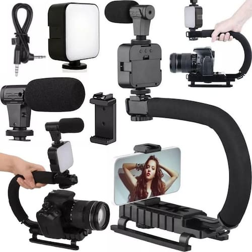 Estabilizador de imagem câmera dslr suporte para celular steadicam painel luz microfone direcional filmagem profissional total de nossos produtos,pois são testados antes do envio. Kit estabilizador de mão tipo escorpião para câmeras e smartphones profissional Incluso acessórios luz led e microfone unidirecinal Faça vídeos profissionais com mais facilidade Projetado para gravações recreativas ou videomakers profissionais, que buscam realizar suas filmagens com mais tranquilidade. Permite seu manuseio com mais facilidade, lhe dando mais liberdade para gravar vídeos mais suaves e estáveis. Com espuma acolchoada e base de borracha antiderrapante, proporciona mais segurança durante o uso de sua filmadora ou dslr. Sua estrutura fabricada em plástico abs resistente, possui apenas 350 gramas. Possui pino 1/4 deslizante para encaixe dos equipamentos, e em sua superfície é possível adaptar outros acessórios como microfone, iluminadores de led pequenos, entre outros. Especificações do suporte estabilizador Rosca 1/4 deslizante Compatível com câmeras dslr, filmadoras, action cams e smartphones Acompanha suporte adaptador para celular Sapata hot shoe para instalação de acessórios Cor: preto Material: abs Comprimento: 25cm Altura: 20cm Largura: 8cm Especificações do microfone Diretividade: supercardioide Resposta de frequência: 50hz-16khz Nível de ruído: 24dba Saída: mono p2 3.5mm Acompanha cabo p2 para p3 trs para trrs Especificações da luz de led Potência: 5w Cor da luz: 6500k ajustável Fonte: 3 pilhas aaa inclusas Itens inclusos: 1x suporte estabilizador para câmera e celular 1x painel de led 3x pilhas aaa 1x microfone unidirecinal 1x cabo adaptador p2 para p3 1x suporte adaptador para celular Atenção: Não acompanha celular ou dispositivos. Atenção a cor é escolhida aleatoriamente, conforme a disponibilidade em Postamos em até 24 horas úteis. Marca: Não Informado