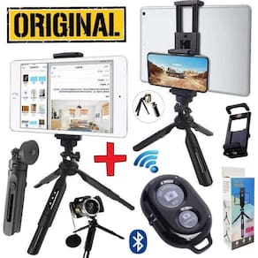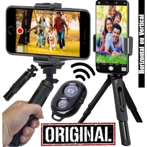 basta que sua câmera tenha entrada padrão 1/4. Os itens que estão inclusos dentro da caixa: - 1x tripé monopod steadicam - 1x suporte adaptador para celular - 1x controle bluetooth