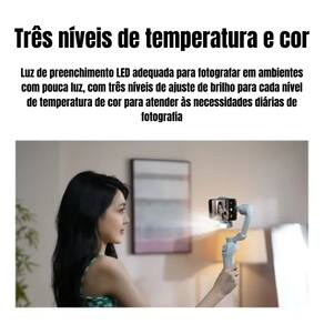 Estabilização Impecável de 3 Eixos Equipado com a 7ª geração de tecnologia de estabilização, o L10 elimina tremores e movimentos indesejados nos eixos Pan, Pitch e Roll, garantindo vídeos incrivelmente suaves e estáveis, mesmo em movimento. Luz de Preenchimento IntegradaA falta de luz não será mais um problema! O L10 possui uma luz de LED embutida com múltiplos níveis de brilho e temperatura, perfeita para garantir a iluminação ideal em qualquer cenário, seja de dia ou de noite. Rastreamento FacialGrave sozinho como se tivesse um cinegrafista particular. O módulo inteligente de rastreamento facial mantém você (ou o objeto escolhido) sempre em foco e centralizado no quadro, de forma automática e precisaCompacto, Dobrável e Pronto para Viagem Leve sua criatividade para qualquer lugar. O design dobrável e o peso de apenas 350g tornam o L10 extremamente portátil. Ele cabe facilmente na sua bolsa ou mochila, e já vem com uma bolsa de transporte e um mini tripé. Bateria de Alta Duração Com uma bateria de longa duração, você tem até 5 horas de gravação contínua para não perder nenhum momento importante. Controle Total e IntuitivoTenha o poder na ponta dos seus dedos. Alterne facilmente entre os modos de gravação, mude da horizontal (paisagem) para a vertical (retrato) com um único toque, controle o zoom com a roda lateral e use o joystick para criar movimentos de câmera perfeitos. Seja para criar conteúdo para redes sociais, gravar vídeos de viagens ou simplesmente registrar momentos especiais com a família, o Gimbal L10 da NOVAVIDA é a ferramenta definitiva para desbloquear todo o potencial da câmera do seu celular.Especificações Técnicas