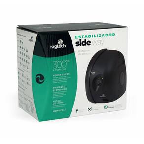 A Ragtech inova mais uma vez com a linha de estabilizadores Side Way, harmonizando tecnologia e design. Apresenta recursos avançados e exclusivos: tempo de resposta ultra rápido [o mais veloz de sua categoria] e guia de cabos para organizar a saída dos cabos conectados. Possui tecnologia true rms que garante regulação precisa mesmo em redes distorcidas. São produzidos com padrão de qualidade que atendem à norma de segurança e desempenho NBR14373:2006 da ABNT.