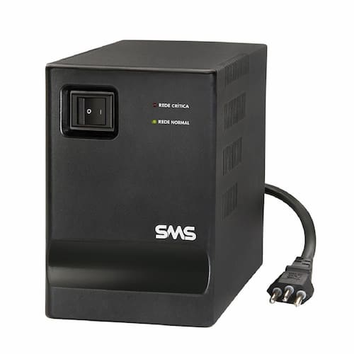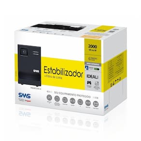 5. Correção de variação da rede elétrica por degrau. Filtro de linha interno: Atenua os ruídos provenientes da rede elétrica, aumentando o nível de proteção aos equipamentos conectados. Fusível rearmável: Elimina a necessidade de troca de fusíveis. Na ocorrência de um evento de curto-circuito ou sobrecarga, basta pressionar o fusível para que o estabilizador volte a funcionar. Tomadas de saída: Possui 5 tomadas de saída no modelo monovolt e 6 no modelo bivolt, sendo que uma delas é espaçada para facilitar a conexão de fontes e carregadores sem sem obstruir a tomada ao lado. Características: Marca: SMS
