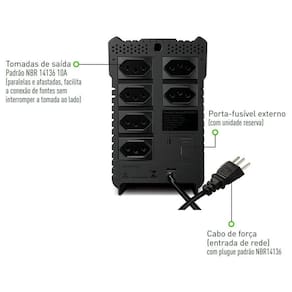 Conexão de saída: 6 tomadas NBR 14136 10A