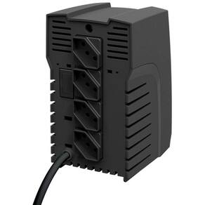 Possui 4 tomadas de saída e filtro de linha integrado com atenuação em RFI e EMI. Além de sinalização visual de tensão em 3 níveis, quando em rede normal ficará aceso o led em verde, e quando sobretensão e subtensão o led vermelho que aparecerá aceso.
