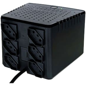 Características: Potência de 2500VA Microprocessado Filtro de linha integrado (em modo comum e diferencial) com atenuação em RFI e EMI 6 tomadas de saída Tensão de entrada: 115V Tensão de saída: 115V Alarme sonoro de indicação Chave liga-desliga embutida e temporizada Medição e análise em TRUE RMS Sinalização visual de tensão em 5 níveis Rede normal (led aceso) Sobretensão (piscagem rápida) Subtensão (piscagem lenta) Análise de rede (piscagem crescente por 2 segundos) Sobrecarga (piscagem normal) Proteção contra surtos de tensão Proteção eletrônica contra sobrecarga Proteção eletrônica contra sub/sobretensão (desligamento e rearme automático na saída) Fusível externo de proteção (com unidade reserva) Altura: 12 cm Largura: 16 cm Profundidade: 18 cm Peso: 1,5 kg