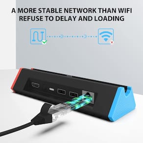 Estação dock de TV SIWIQU para Nintendo Switch/Switch OLED, docking station de TV portátil com porta LAN de 1000 Mbs/adaptador HDMI 4K/porta tipo C/substituição de porta USB (modelo LAN com rosa e verde) - Porta LAN de 1000 Mbs disponível: Nosso dock ajuda a conectar seu Nintendo Switch a um sistema de rede com fio, um ambiente de rede muito mais rápido e estável do que uma conexão WiFi. Desfrute de um download super rápido e de alta qualidade no seu Nintendo Switch. É o melhor amigo de todo jogador. - Troca de tela com um toque: pressione o botão Modo TV/Mesa na parte traseira do dock, você pode escolher o Modo Mesa ou o Modo de Saída de TV. O dock nintendo switch para TV suporta saídas de vídeo 4K, 1080P e 720P (o Switch suporta apenas 1080P). - Carregue enquanto joga: o suporte de carregamento permite que o sistema Nintendo Switch seja carregado enquanto estiver no modo TV ou mesa. Chip autêntico inteligente integrado, com proteção contra curto-circuito, proteção contra sobrecarga, proteção de recuperação e proteção contra superaquecimento. Ele permite que você jogue com o Switch por um longo período de tempo em seus jogos favoritos. - Portátil e compacto: este dock tem apenas 100 g (3,5 onças), 7,1 pol* 2,6 pol* 1,6 pol., o que é muito mais portátil e leve do que o dock oficial do switch. Sua capacidade de trabalho é a mesma do padrão oficial, então é a estação substituta perfeita para o Official Nintendo Switch Dock. Atenção: Use o adaptador de alimentação autêntico oficial do Switch. - Disponível em várias portas:: Este dock de TV Switch tem 1 porta HDMI, 1 porta LAN, 2 portas USB, 1 botão de switch, 1 porta de entrada USB-C e 1 porta de saída tipo C. A almofada antiderrapante na parte inferior evita que ela deslize ou caia acidentalmente.