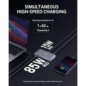 - Carregue e transfira em alta velocidade: conecte seu laptop USB-C à porta upstream Thunderbolt 4 para obter uma carga poderosa de até 85 W ou conecte dispositivos móveis às outras 3 portas Thunderbolt 4 para obter uma carga de 15 W. As 3 portas downstream Thunderbolt 4 também suportam velocidades de transferência de dados de até 40 Gbps, o suficiente para transferir um arquivo de 20 GB em pouco mais de 10 segundos.