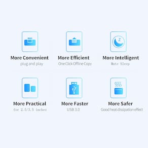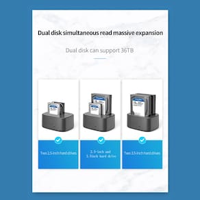 Esta docking station compatível com HDD/SSD de 2,5 polegadas ou 3,5 polegadas de até 16 TB por compartimento, oferece uma maneira mais conveniente de transmitir dados entre o disco rígido e o computador por meio de uma porta USB disponível.