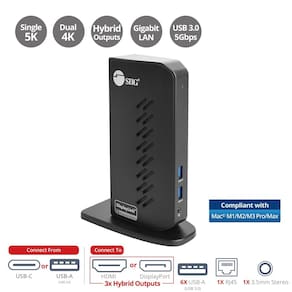 Esta docking station de vídeo Universal Hybrid Dual 4K é totalmente certificada para atender à certificação DisplayLink