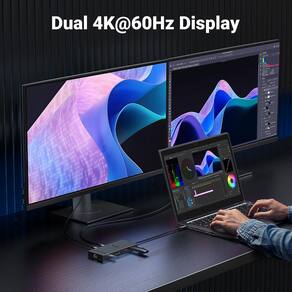 - Estação de ancoragem HDMI dupla 4K: a estação de ancoragem conectará dois monitores para ambas as portas HDMI em 4K a 60Hz máx. Observe que, devido a limitações do MacOS, todos os monitores estendidos exibirão o mesmo conteúdo ao conectar MacBooks