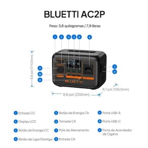 Estação de Armazenamento de Energia Portátil 300W 230Wh AC2P BLUETTI