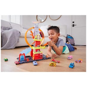 O conjunto de brinquedos Hot Wheels City Super Loop Fire Station é perfeito para as crianças que adoram brincar com carrinhos e criar aventuras emocionantes. O conjunto inclui um loop ajustável de vários níveis e um kicker de loop que impulsiona os carros pela estação e por uma rampa translúcida semelhante a água. A base apresenta detalhes incríveis do trackplay que inspiram narrativas criativas e conectores para conectá la a outros conjuntos Hot Wheels.