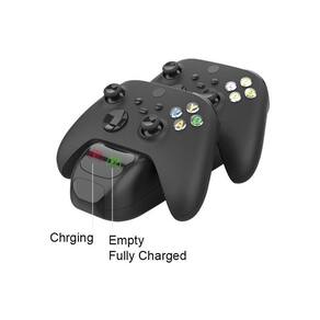 Design para o controlador X-box Série X.Inclui bateria de 2 peças, a capacidade de cada bateria é de 600 mAh.Pode carregar dois controladores X-box Série X ao mesmo tempo. Com função de indicador de carga.O indicador esquerdo é para mostrar o estado de carregamento da base de carga traseira, e o indicador direito é para mostrar o estado de carregamento da base de carga frontal.Quando o indicador está verde, significa que está completamente carregado ou vazio; se o indicador estiver vermelho, significa que já está carregado.Depois de inserir o pacote.Depois de inserir o pacote de baterias no controlador, o cabo de carga TYPE-C também pode ser para conectar diretamente o pacote de baterias para carga.Acessórios do produto: 1 base de carga dupla, 1 cabo de carregamento. Pacote de bateria de 2 peçasComprimento do cabo: 80 cm