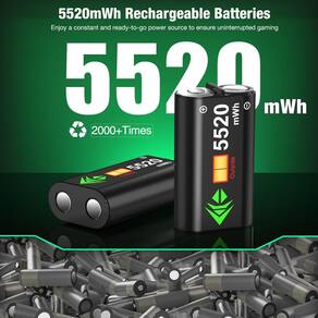 Pacote de bateria de carregador Xbox com bateria recarregável de 2 x 5520 mWh para controle Xbox Series X/S/One/Elite, base de carregamento para controle Xbox One, pacote de bateria com 4 capas traseiras - Potência de alta capacidade: o carregador de bateria do controle xbox equipado com duas baterias de 5520 mWh, nosso pacote garante uma jogabilidade prolongada sem interrupções. O pacote inclui uma estação de carregamento para 2 controladores, 2 baterias extras, 1 cabo de carregamento e 4 capas de bateria (2 para xbox one, One, One x e outras 2 para Xbox Series x|s) para sua conveniência - Jogabilidade estendida: com um tempo de carregamento rápido de 4 horas, desfrute de impressionantes 18-25 horas de jogos ininterruptos. Recarregável até 2000 vezes, nossa bateria foi projetada para manter você no jogo por um longo tempo. Compatível com controles Xbox One, Xbox One S, Xbox One X, Xbox Elite, Xbox Series S e Xbox Series X - Carregamento rápido e proteção avançada: nossa bateria recarregável xbox vem com proteção contra sobrecarga, sobrecorrente, superaquecimento e curto-circuito, garantindo a segurança do processo de carregamento. Com um cabo de carregamento USB C, permitindo um tempo de carregamento rápido para recarregar totalmente seus controles remotos Xbox. Sempre tenha dois controles totalmente carregados prontos para outra rodada de jogos - Indicadores LED estéticos e inteligentes: Destaque-se com a estética inspirada no capacete robô na frente, adicione um pouco de impulso de super-herói à sua atmosfera de jogo. Mantenha-se informado sobre o status da sua bateria com os indicadores LED da estação de carregamento do controlador xbox series x: luz vermelha - carregamento; luz verde totalmente carregada. Um botão na parte superior pode ligar/desligar as luzes LED, o que não afetará o carregamento das baterias - Design conveniente: o compartimento inferior da bateria do carregador xbox one é engenhosamente projetado para armazenamento conveniente da bateria, garantindo que você nunca perca as baterias sobressalentes, é um acessório legal para xbox gamer presentes