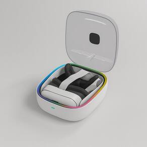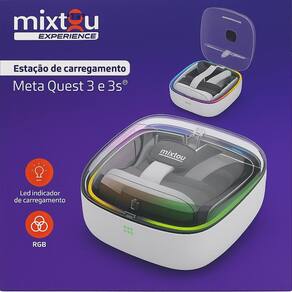 Estação de carregamento para headset e controles VR. Carregamento inteligente e simultâneo. Inclui 2 baterias recarregáveis de 1800 mAh. Proteções de segurança integradas contra sobrecarga, sobrecorrente, sobretensão e curto-circuito. Design moderno e estável. Indicador de LED (laranja para carregando, verde para carregado).Tipo