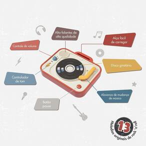 Portátil: Alças que facilitam o transporte, permitindo que o pequeno DJ leve a diversão para qualquer lugar.