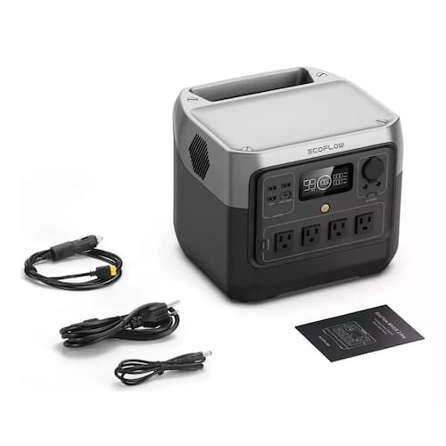 Sua capacidade é de 768 Wh e fornece uma potência de 800 W na saída CA e no modo X-Boost até 1600 W. Ele pode alimentar 4 dispositivos USB e 3 CA simultaneamente.