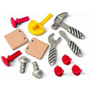Inclui martelo de brincar, chave inglesa, serra embutida e grampo de torno Martelo e pregos ajudam a desenvolver habilidades de coordenação mão olho Serra corta jogar tábuas de madeira. Placa de pinos e ganchos para zenamento de ferramentas. A porta deslizante abaixo revela espaço de zenamento adicional Durável e testado em segurança para um jogo duradouro Marca: Não Informado