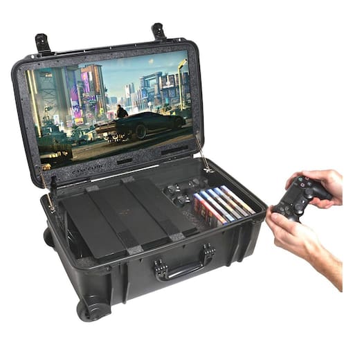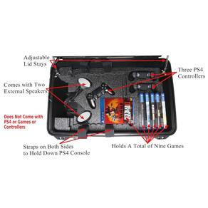 Caso se encaixa PS4, PS4 Slim, PS4 Pro não incluído, juntamente com 3 controladores e 9 jogos não incluídos A estação vem com monitor de , alto falantes externos removíveis e espuma personalizada Especificações do monitor resolução 1080p, tempo de resposta 8ms 5ms GtG, taxa de atualização 60 Hz, proporção de aspecto 16 9, ângulo de visão de 178 graus, tecnologia adaptativa de inteligência de brilho. A caixa é à prova dágua, hermética, com cadeado, com rodas, tem tampa para ângulo de visão ajustável, jogos podem ser descarregados e carregados sem remoção do console. Os jogos podem ser jogados sem remover o console. Não cabe no PS2, PS3 , apenas nos modelos , Slim e Pro. Console PS4, controladores e jogos NÃO incluídos. A caixa pesa 15 kg totalmente carregada Marca: Não Informado