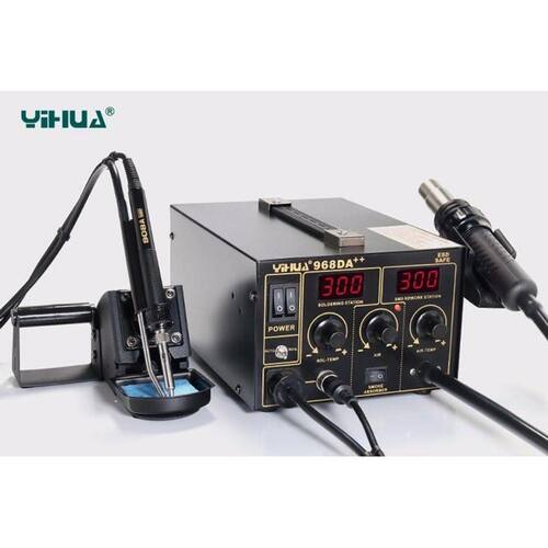 O equipamento 968DA ++ faz parte da linha de estações de retrabalho 3 em 1 da Yihua. Conta com controladores de temperatura que utilizam tecnologia com núcleo, tornando a saída de fluxo de ar e do ferro de solda muito confiável.