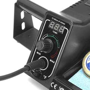 YIHUA 926 LED é versão de atualizada do modelo 926, adicionando o suporte de limpador de ponteira, de pasta ou limpador de bronze e com a conveniência do painel de led, que facilita e permite a regulagem mais precisa da temperatura.1. faixa de temperatura Ajustável: 200 a 480 Graus2. Potência: até 75 W3. Circuito de controle de temperatura, para uma ajuste mais preciso.4. Soldador fabricado com material de alta qualidade e muito durável.5. Tubo em aço inoxidável 304.6. Manopla fabricado com material resistente à temperatura entre a alça e o tambor de aço que aumenta o isolamento, aumentando o conforto mesmo sendo utilizado por muitas horas seguidas.7. Gerenciador de desligamento automático após 10 minutos sem trabalho, voltando á temperatura de 200ºC.8. Alimentação: 110V ou 220V escolha a voltagem na hora da compra 9. Painel de led.Inclui:1 x Estação de solda.1 suporte do fio de estanho.1 suporte ferro1 limpador de ponteiraTamanho do produto: 13x10x12cm aproximado Tamanho da embalagem: 31x14x15cmPeso:860grCódigo: GT442 Marca: Yihua - Lorben